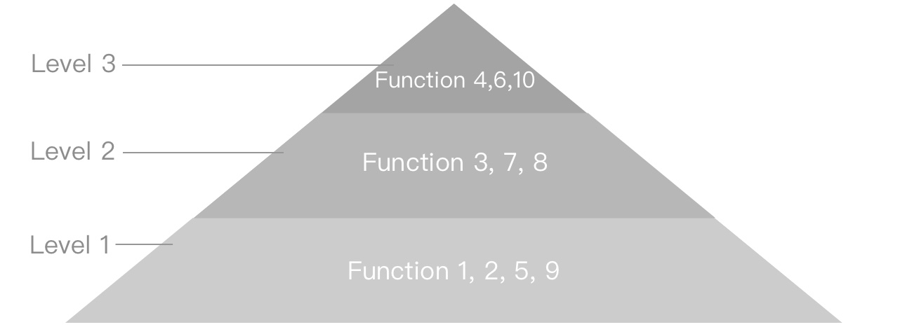 As a student majors in Software Engineering, I am familiar with the current popular Agile Software Development[2], an approach to software development under which requirements and solutions evolve through the collaborative effort of self-organizing and cross-functional teams and their user(s). Scrum[3] is one of the development framework in Agile. However, for this individual project, I combined Scrum framework with some features of iterative and incremental development[4]. Considering the difficulty of implementing each function is different: some functions won't take a long time, others are hard or have a large workload, I divided them into 3 level: level 1 is the easiest, and level 3 is the hardest. Starting from the easiest could bring self-achievement and shorten development time. The graphs below show the taxonomy of functions and the development process.